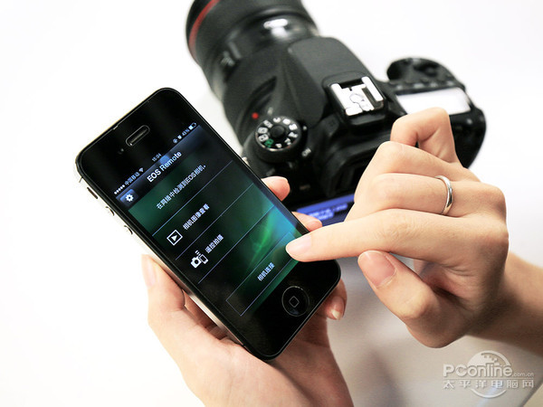 智能手机与单反通讯前需要安装该品牌相机的客户端软件,连接好后客户端可以操作、ISO、补偿等基础功能,还可以选择对焦区域,并放大显示。