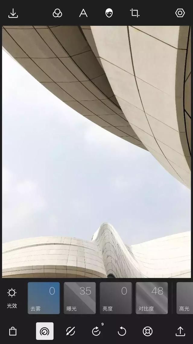 如果只是简单的调整亮度、,并不能带给照片的感觉。或者简单使用HDR滤镜处理,也较千篇一律,而且容易产生噪点影响画质。我们使用泼辣修图进行综合调整,将原片调整为建筑风格,效果如下: