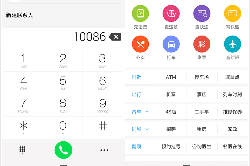 SUGAR2C手机的拨号界面设计简单,但有个亮点就是数字拨号盘的铃声是钢琴声,老妈顺手按了几个数字,一阵悦耳的钢琴声飘了出来。拨号界面还整合了联系人、收藏、查号,这个查号也是万能的查询工具,可以查询车票、快递、外卖等生活上的服务,这点便捷的设计让老妈惊喜不已。