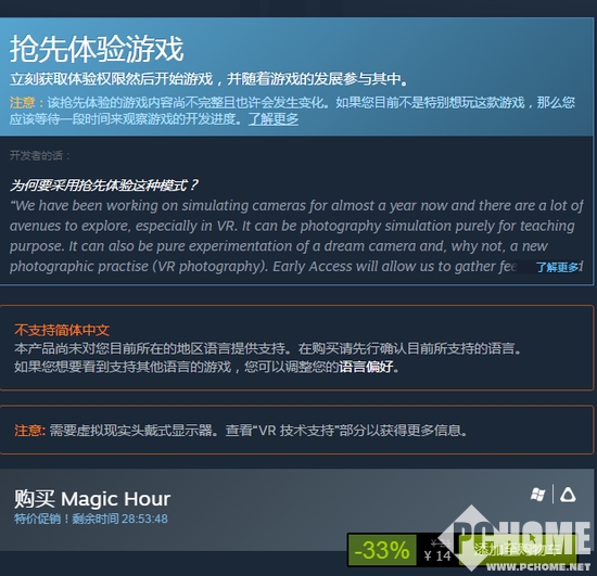 目前,《Magic Hour》已经登陆Steam VR平台,目前优惠售价只有14元。这是一个体验摄影的很好机会,如果只有迷你相机,如果可以用于拍摄的风景有限,如果正在寻找更多摄影体验,如果想拥有一大堆的摄影专用镜头,《Magic Hour》应该是一个可以提供更多选择的应用。
