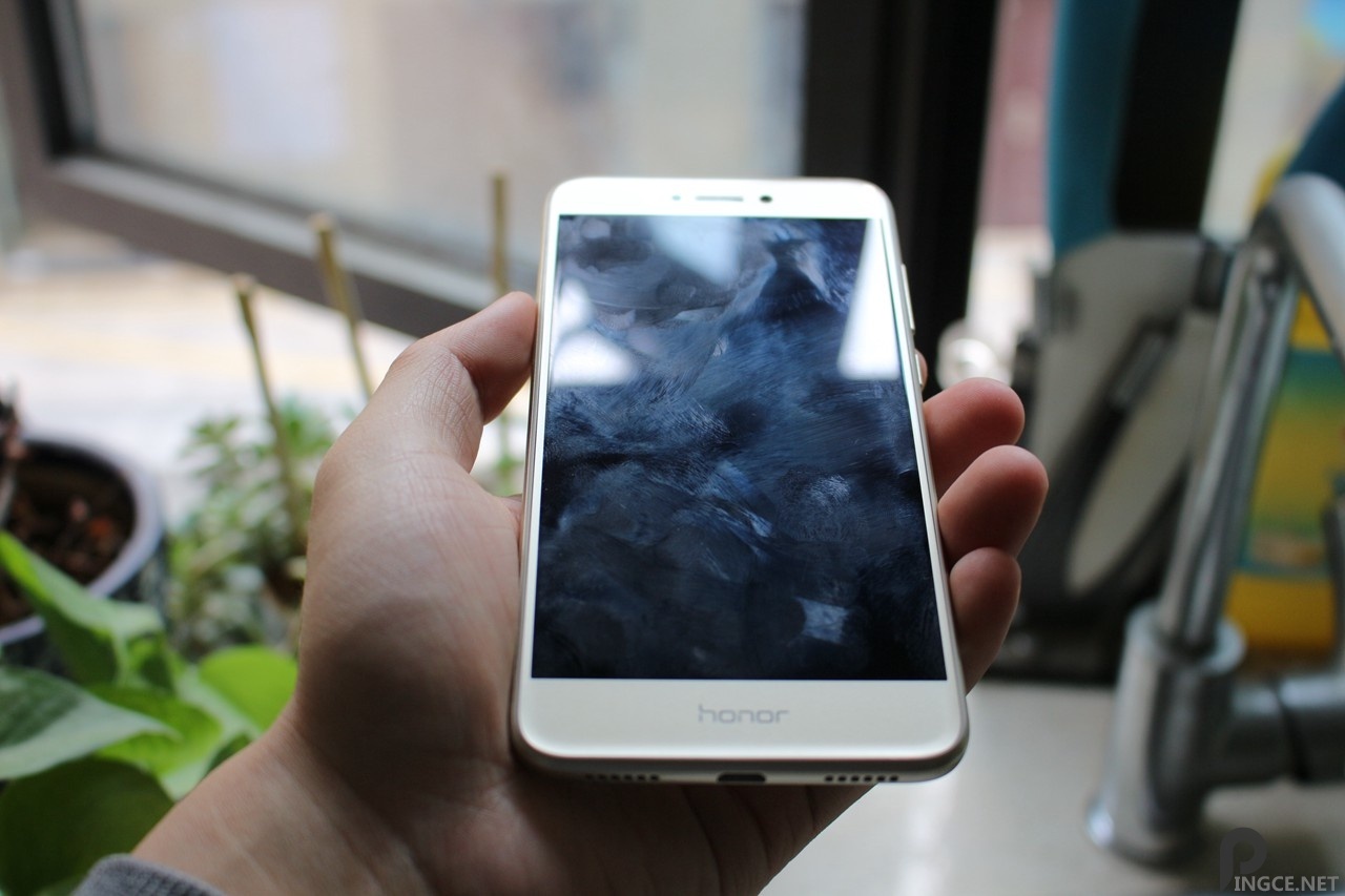 所以荣耀8青春版看着像是荣耀8的简化版,但除了玻璃的镀膜工艺不同外,中框部分也从金属变成了塑料,整体的质感和魅蓝X、荣耀8差了不少;
