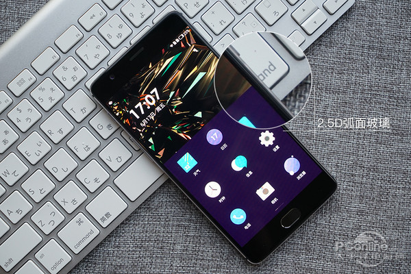 一加3正面采用了一块5.5英寸的2.5D弧面玻璃屏这种设计基本上已经成为了2016年手机的主流,既拥有更好的手感,也使得手机更加圆润、漂亮。