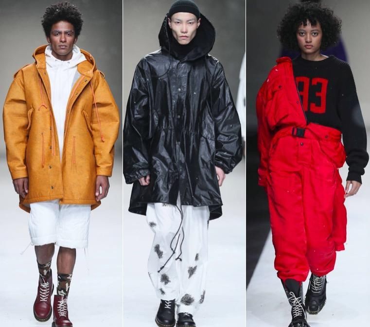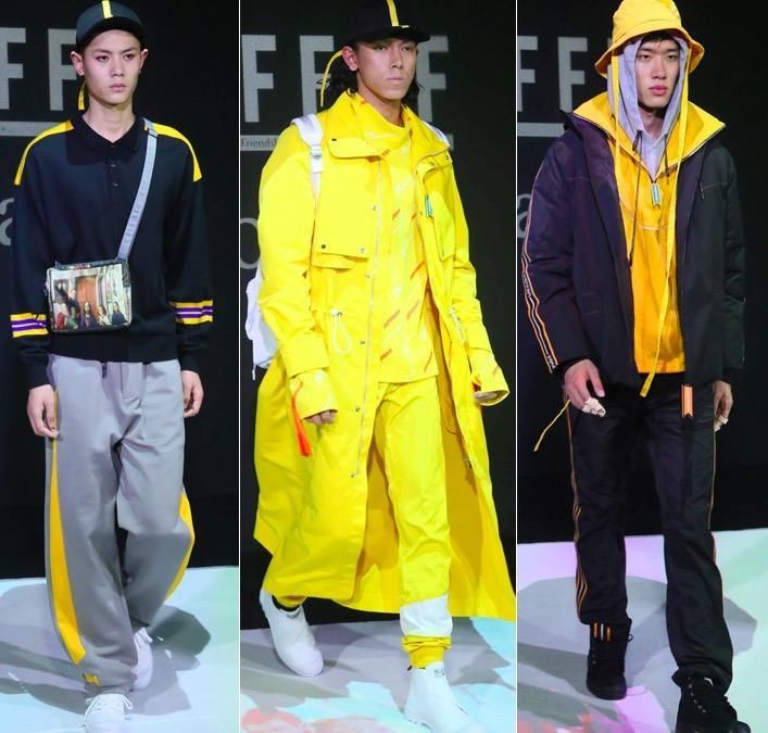 合起来完全不一样的款式来的版型变化和突出形象,带有异质感的材料的混合,甚至会产生像通镜头看一样错觉的看到部分的夸张和突如其来的反转,单挑的潮流和强力的ACID色感、细节,完全特别的潮流。