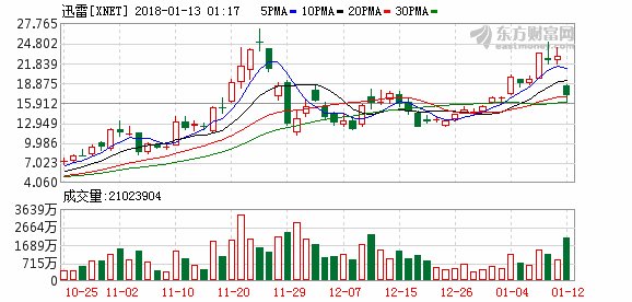 21世纪经济报道记者查询了解到,迅雷“玩客币”在2017年10月12日宣布正式“开挖”。即便在央行等部委叫停ICO后,玩客币依旧打着擦边球的大行其道,并在二级市场上有较大涨幅,吸引一些普通投资者卷入。迅雷网络(XNET)的股价也从长期走势平静的4.37美元/股飙涨行情,一度达到27.00美元/股的高点。截至2018年1月11日收盘,股价也仍高达22.90美元/股的高点。