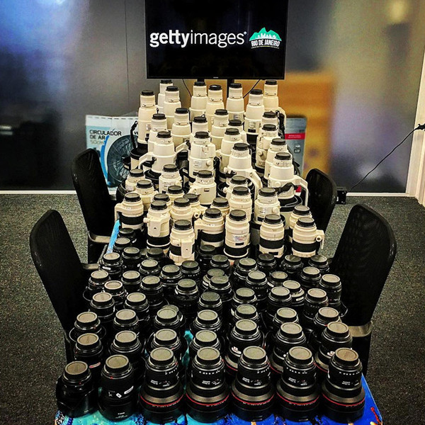 作为观众可以充耳不闻,但是世界各地的体育摄影师还是要如约奔赴赛场的,体育摄影就是一场器材的大较量。Getty Images公司为摄影师准备了配置的相机作为武器,这也是体育赛场上常见的长枪短炮。Getty Images公司提供的器材是佳能门下的旗舰产品,每一个摄影师配备四部单反相机、全套大三元变焦镜头以及300mm F2.8和其他长焦定焦镜头。此外还配备了两只闪光灯,一台笔记本电脑、360全景相机以及其他的随行装备。总价值超过42289美元,约人民币28万元。