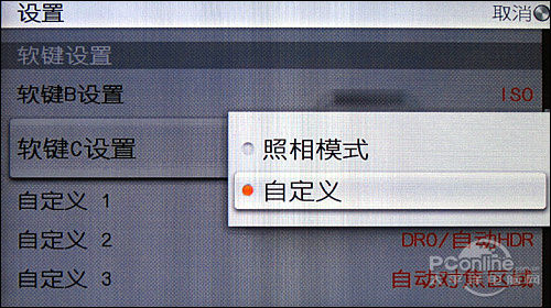 很明显地,可以设置两个软键(即十字键下面的软键,以及十字键中间的软键),已经可以让用户拥有更多的操作灵活性。一些常用的设置项目,可以获得更快速、更直接的调整,而无需进入多层菜单中。具体需要怎样操作,才能自定义设置软键代表的功能呢?请看下面的步骤。