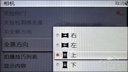 采用扫描全景拍摄时,可选择4个不同的扫描方向。一般用户都是习惯向右扫描的,不过其实还可以像视频那样,采用“向上”的方向,然后竖着机身来扫描。